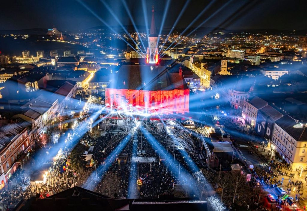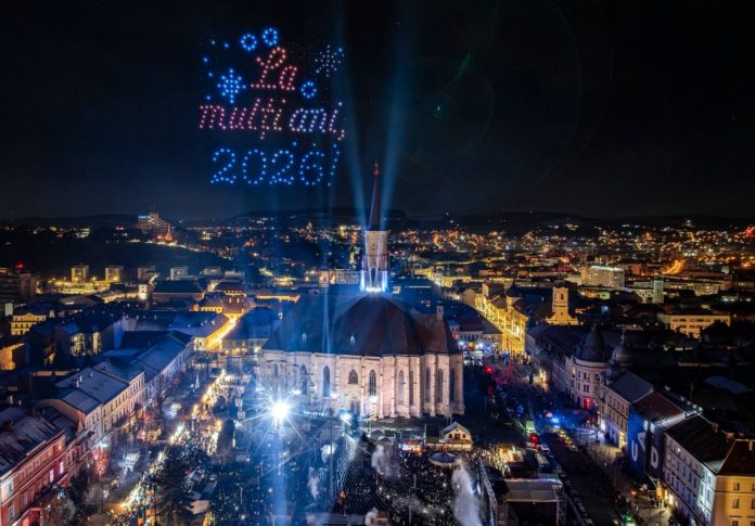 La ora 00:00, cerul Clujului a fost luminat de dronele care au desenat forme și mesaje tematice, momentul culminant fiind întâmpinat cu aplauze și urări de „La mulți ani!”. Mesajul „La mulți ani, 2026!” a fost vizibil deasupra Pieței Unirii, într-un spectacol care a combinat lumina, muzica și sincronizarea precisă.