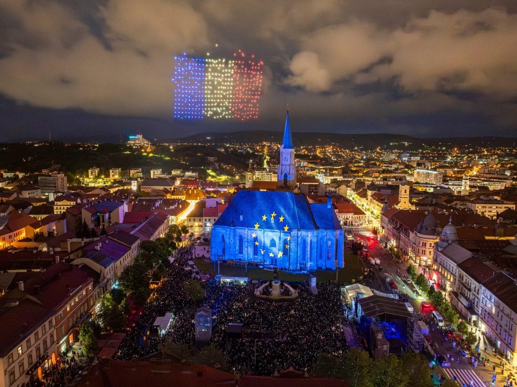 La ora 21:45, cerul Clujului a devenit ecranul unui spectacol care a ridicat priviri și emoții: 400 de drone, jocuri de lumini și videomapping au creat un moment vizual care a intrat în memoria afectivă a orașului.
